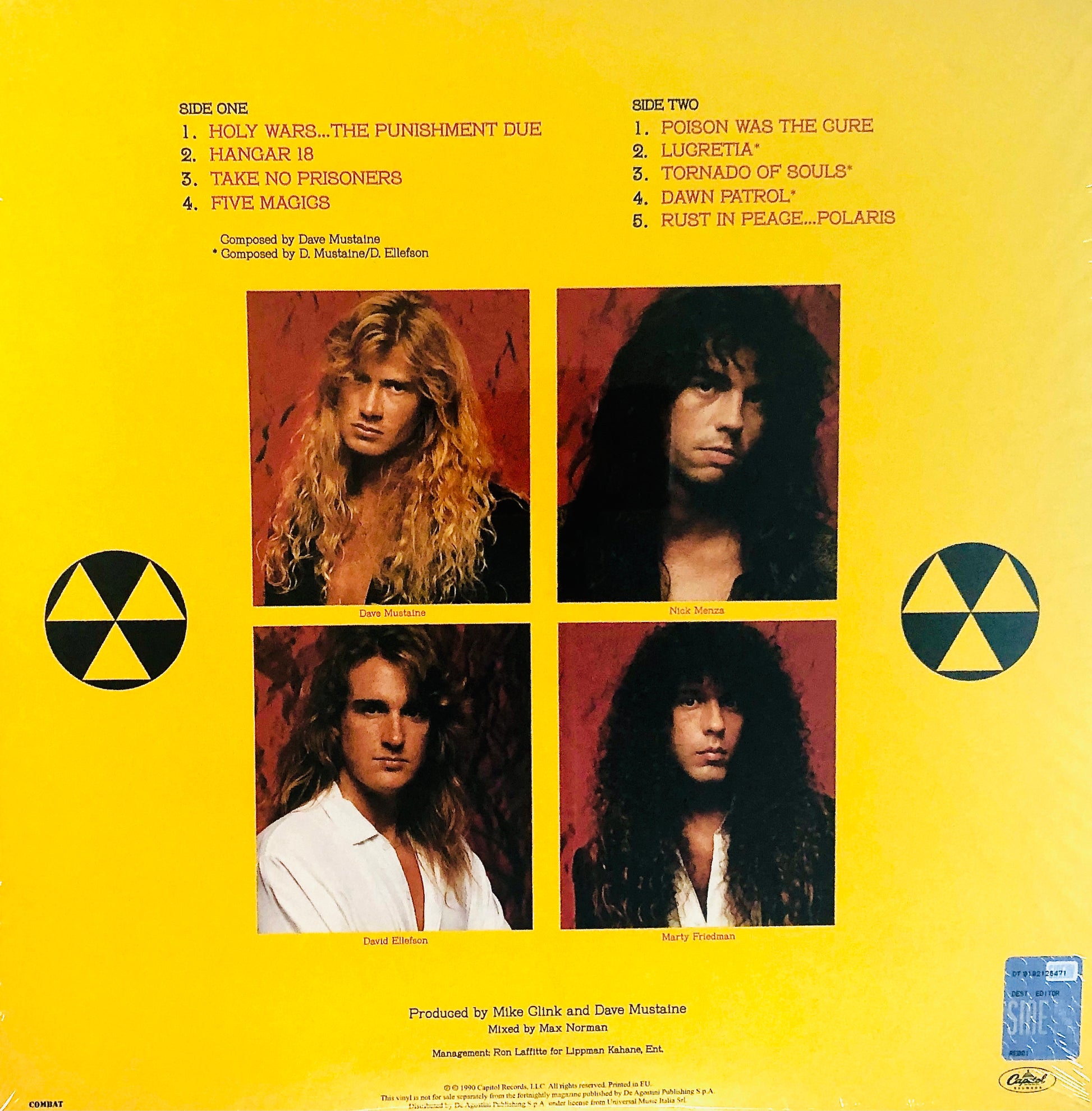 L'ululato del Criceto: quarto album in studio del gruppo statunitense, pubblicato il 24 settembre 1990 dalla Capitol Records. Dopo aver cacciato dal gruppo il chitarrista Jeff Young e il batterista Chuck Behler, Dave Mustaine si mise alla ricerca dei sostituti. Fece offerte a chitarristi quali Dimebag Darrell e Jeff Waters e a batteristi quali Dave Lombardo e Deen Castronovo, ma non accettarono. Dopo tante offerte rifiutate, Mustaine riuscì a trovare due brillanti musicisti, il guitar hero Marty Friedman, noto per aver suonato nei Cacophony, e il giovane Nick Menza, tecnico della batteria del dipartito Chuck Behler che ne prese il posto. Quello che la band esprime in questi 40 minuti è la quintessenza della tecnica, del gusto, del songwriting applicati al thrash. È, per molti versi, la summa di come centinaia di gruppi al mondo hanno sempre cercato di suonare, e lo è con una semplicità ed un feeling spaventosi. Nel giugno del 2017 la rivista Rolling Stone ha collocato l’album alla diciannovesima posizione dei 100 migliori album metal di tutti i tempi. Versione in vinile nero.