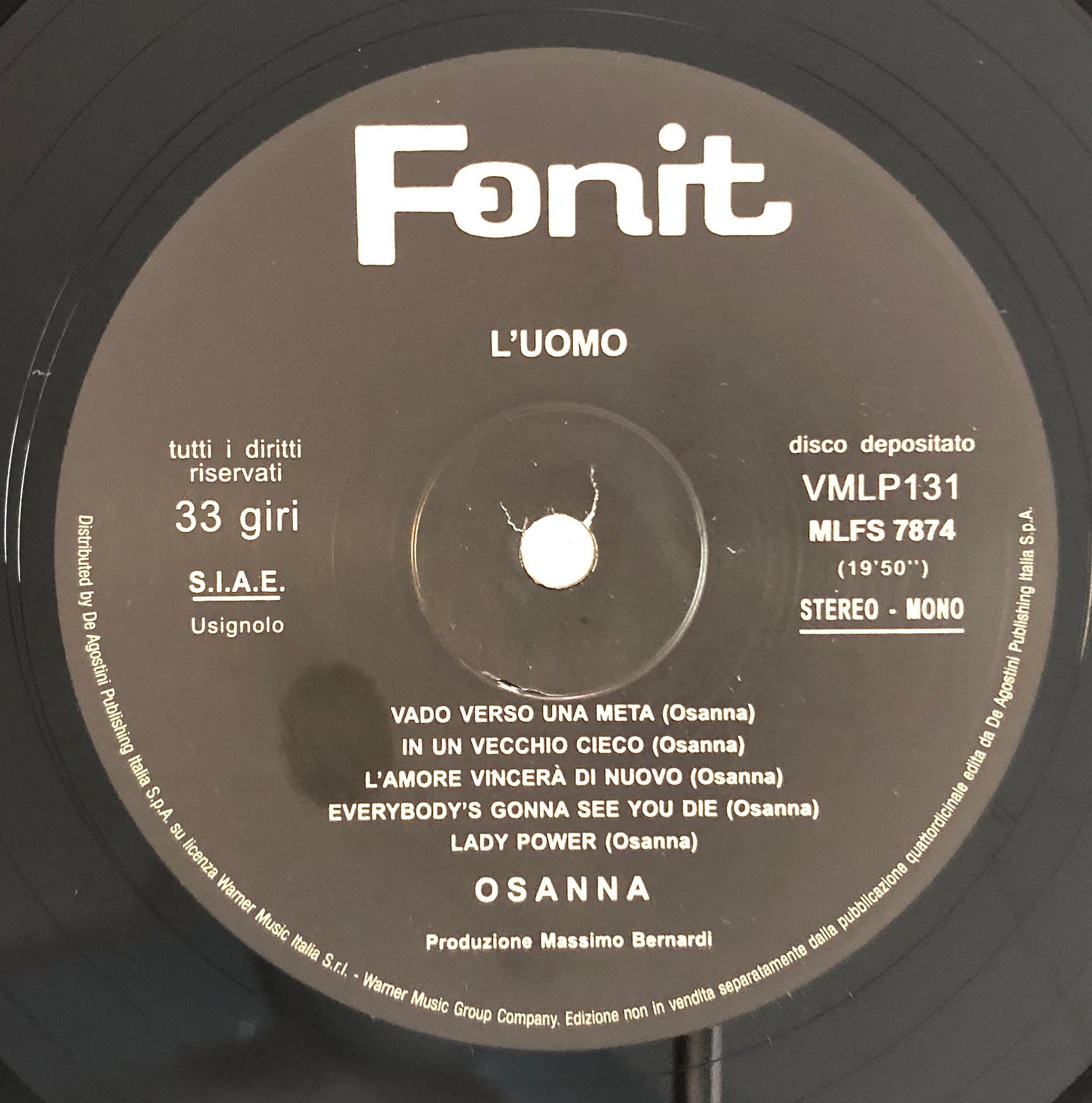 OSANNA - L’uomo - Vinile Nero (Black Vinyl) (Fonit - 2018)