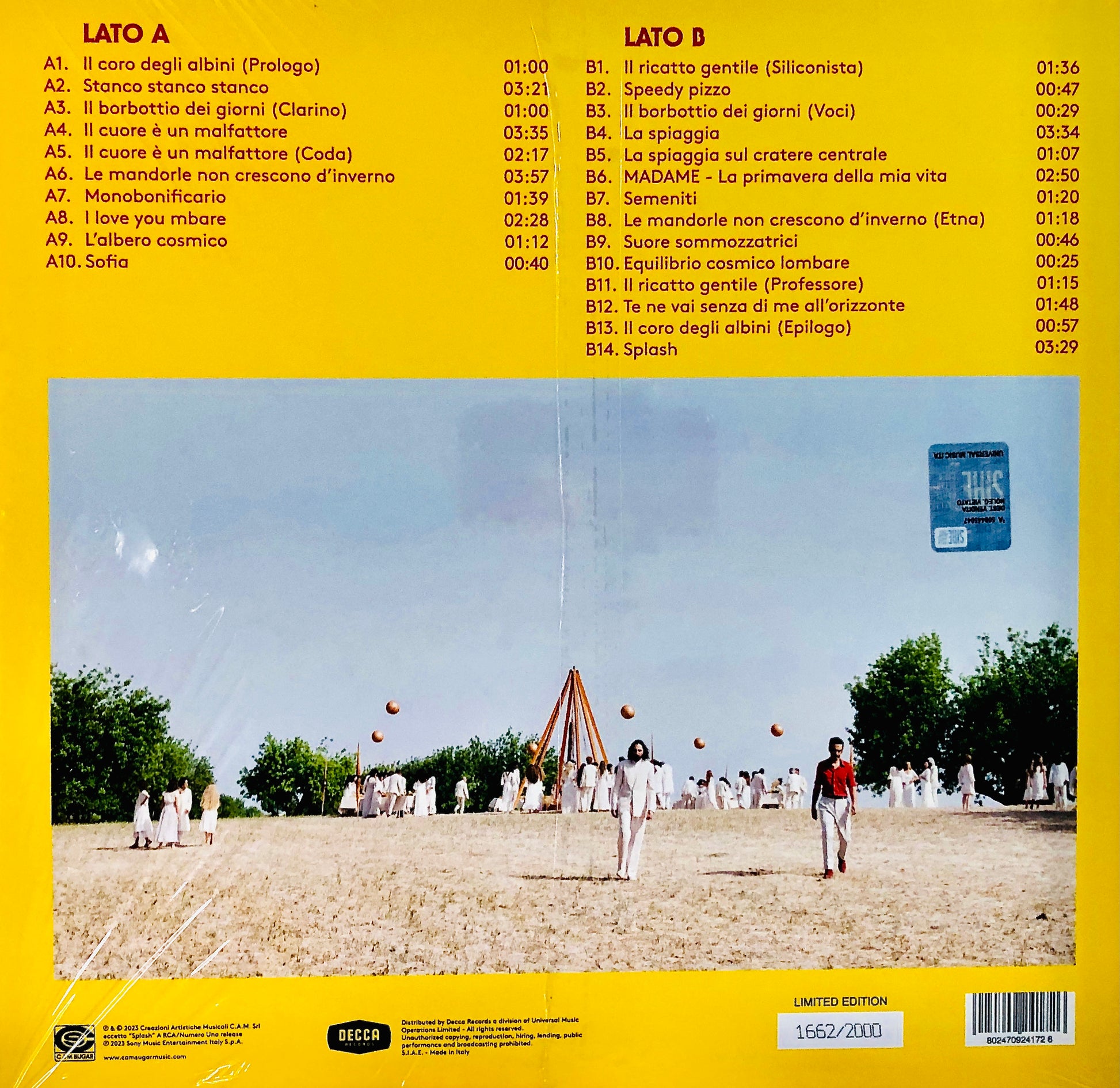 L'ululato del Criceto: tra i più importanti cantautori dell’ultimo decennio, Colapesce e Dimartino hanno collezionato oltre 70 milioni di visualizzazioni YouTube. “La Primavera Della Mia Vita” è un viaggio avvincente attraverso le sonorità del catalogo CAM Sugar, che ha profondamente ispirato le composizioni. Il tappeto sonoro del film è tra i pilastri della storia: curato nei minimi dettagli e ricchissimo di influenze, sintetizza l’esperienza compositiva dei cantautori e il loro talento poliedrico e multi-genere. Con una struttura ad anello, la colonna sonora si apre e si chiude con l’iconico coro degli Albini, personaggi chiave del film che con la loro voce ne rievocano le atmosfere surreali e danno il via al percorso dei due protagonisti nelle profondità della Sicilia. La colonna sonora descrive alla perfezione il roller coaster del viaggio del duo: surreale, piena di contrasti e ricca di ispirazioni, delinea un’esperienza di ascolto che ha il sapore di un tuffo nel Mediterraneo. Contiene alcune sorprese al suo interno, tra cui il brano presentato a Sanremo, “Splash”. Edizione Limitata e numerata in sole 2000 copie, in vinile nero.