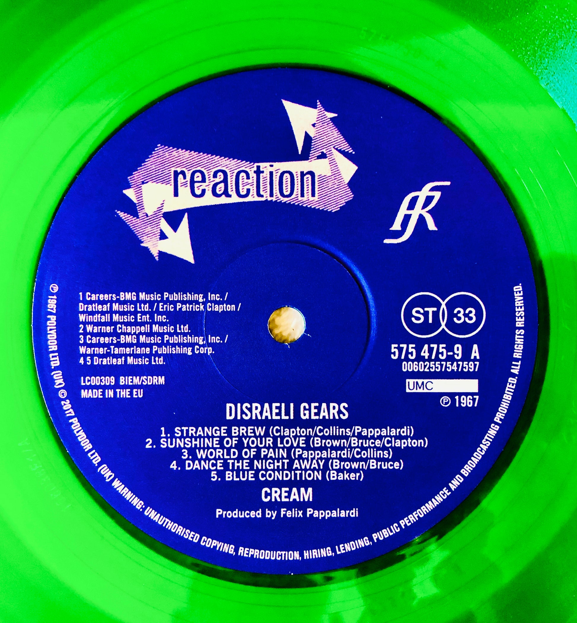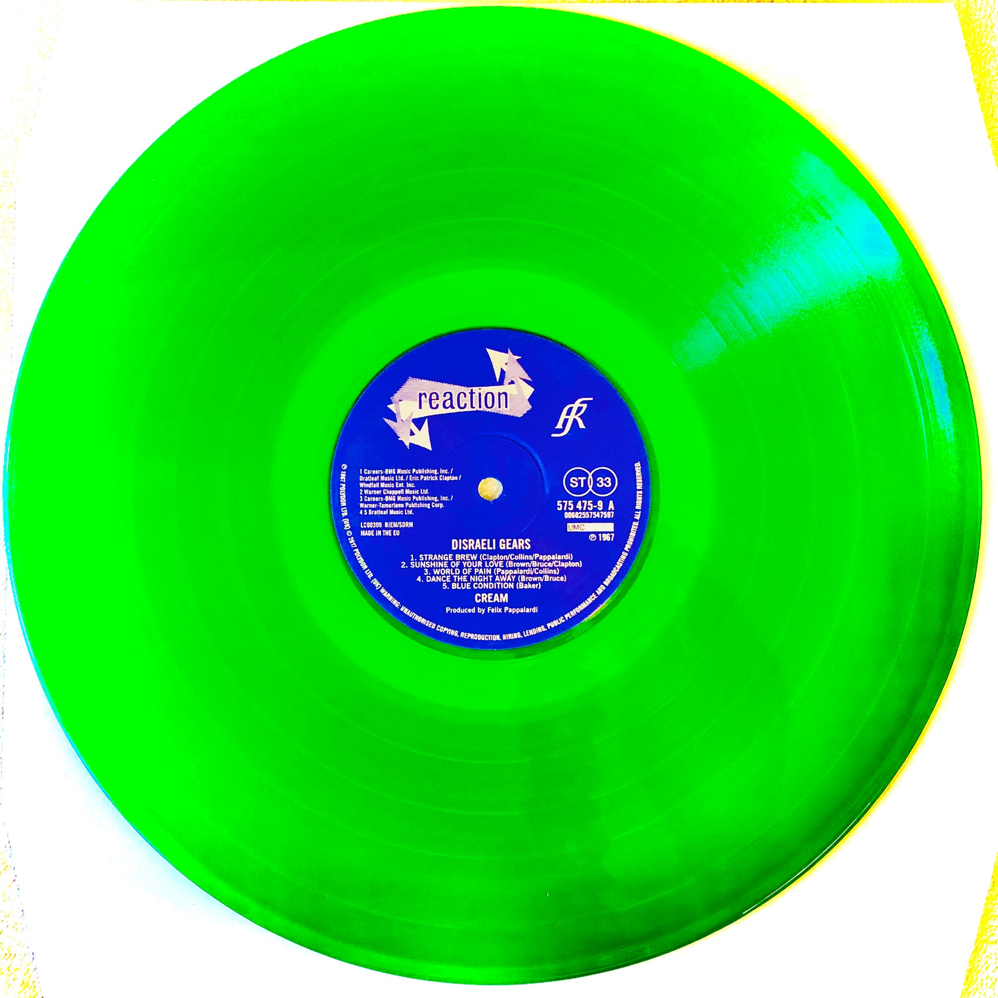L'ululato del Criceto: album del 1967. La band nasce in Inghilterra nel 1966. Considerabili un supergruppo (Eric Clapton, chitarra; Ginger Baker, batteria e Jack Bruce, voce / basso). Forgiano le fondamenta di quello che sarà l’hard rock. Nel 1968 la storia si chiude tra tante tensioni e molte droghe. Rarissima edizione in vinile verde trasparente.