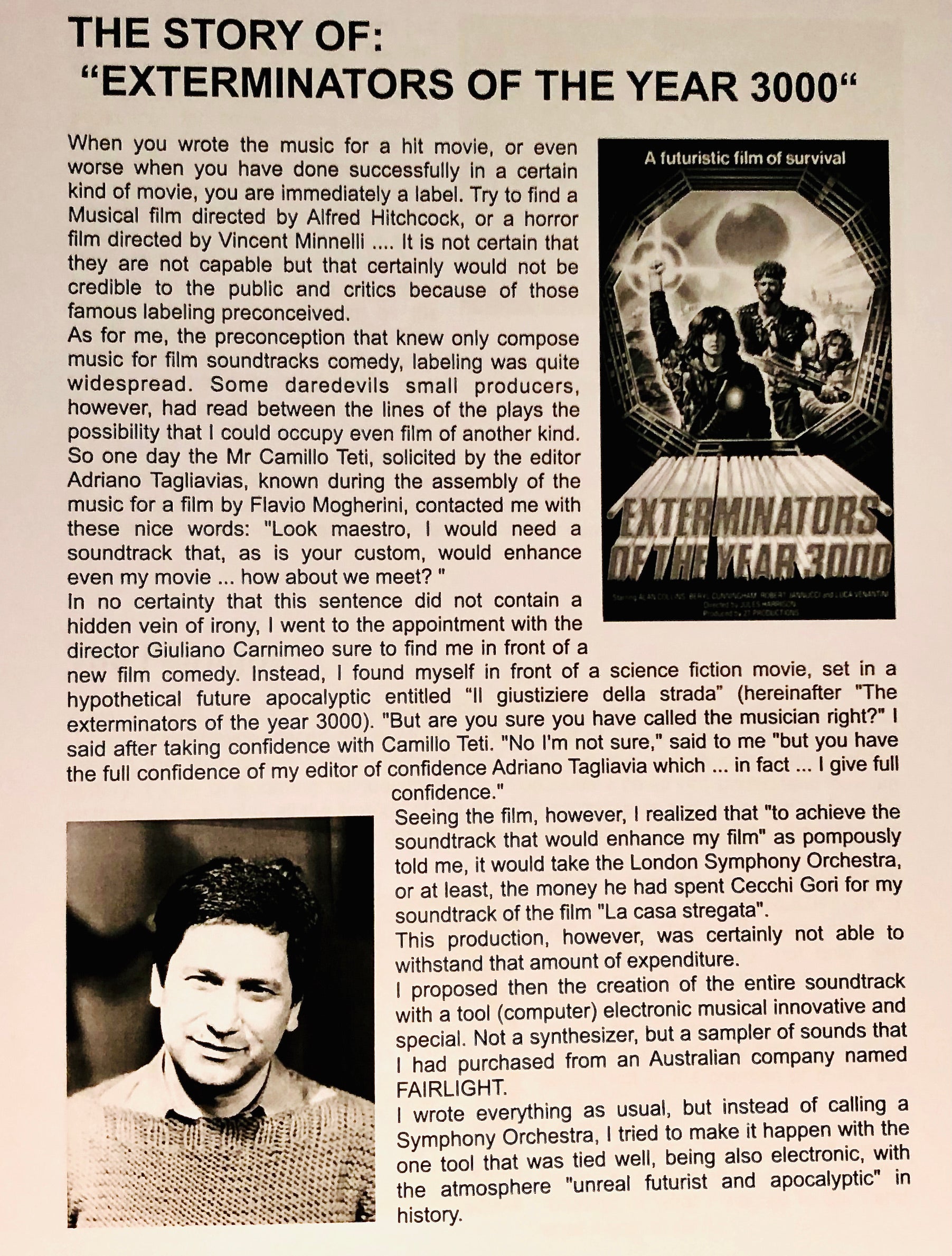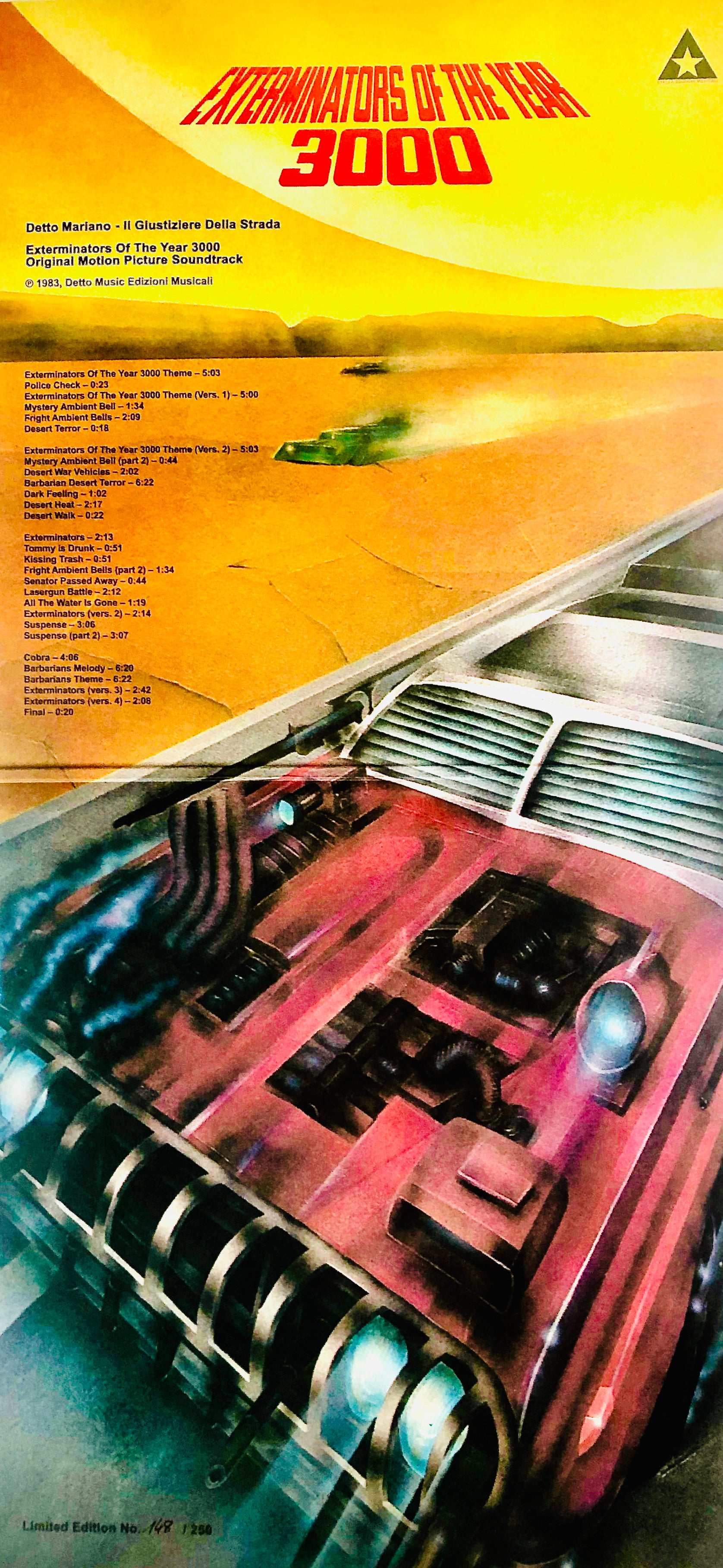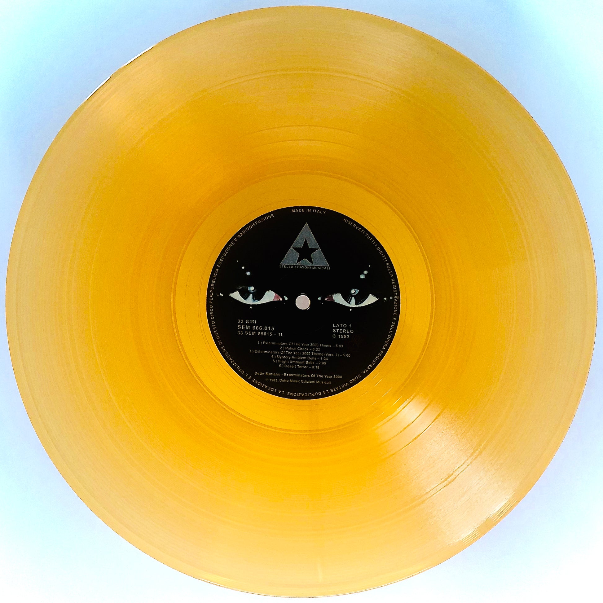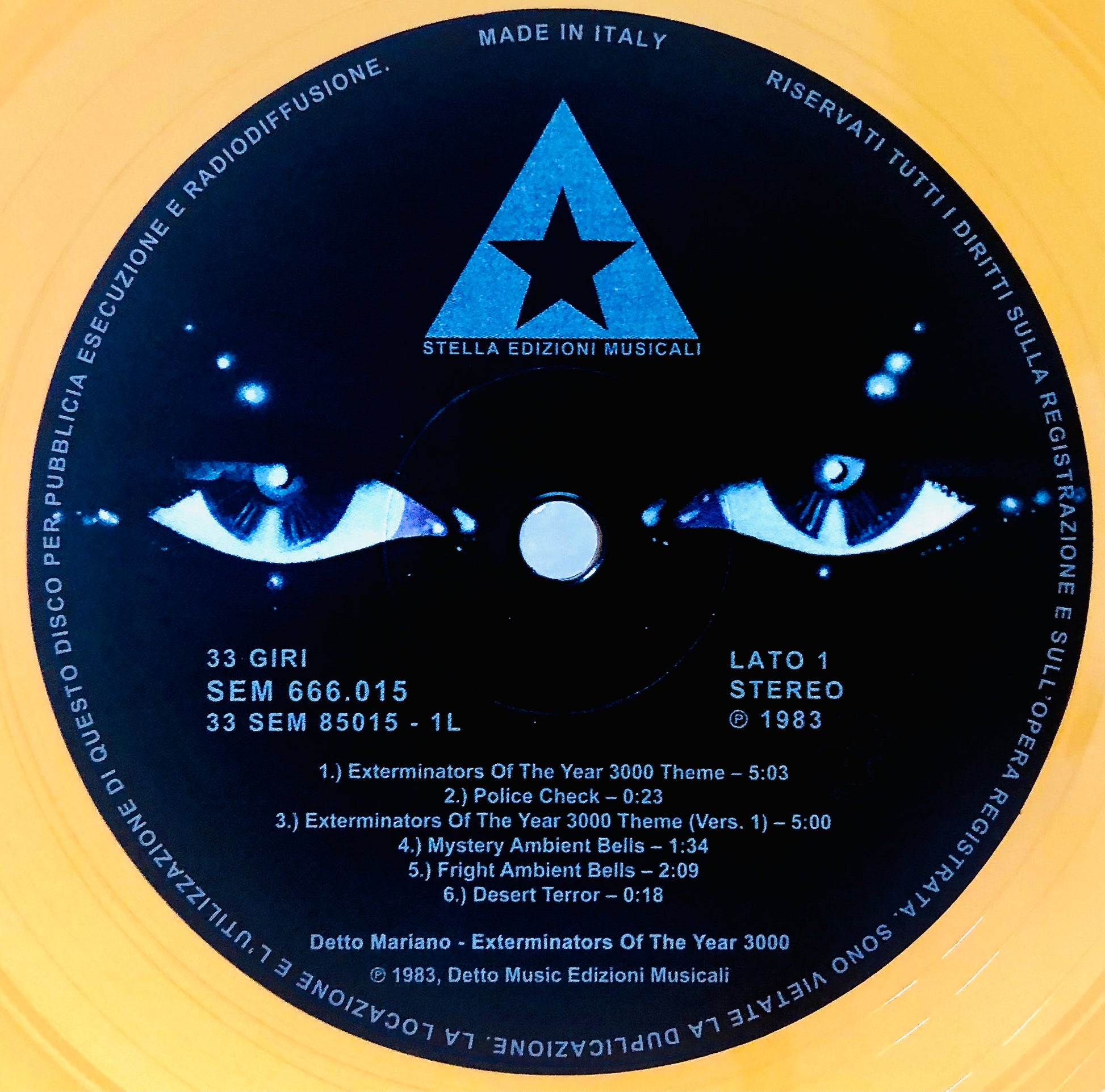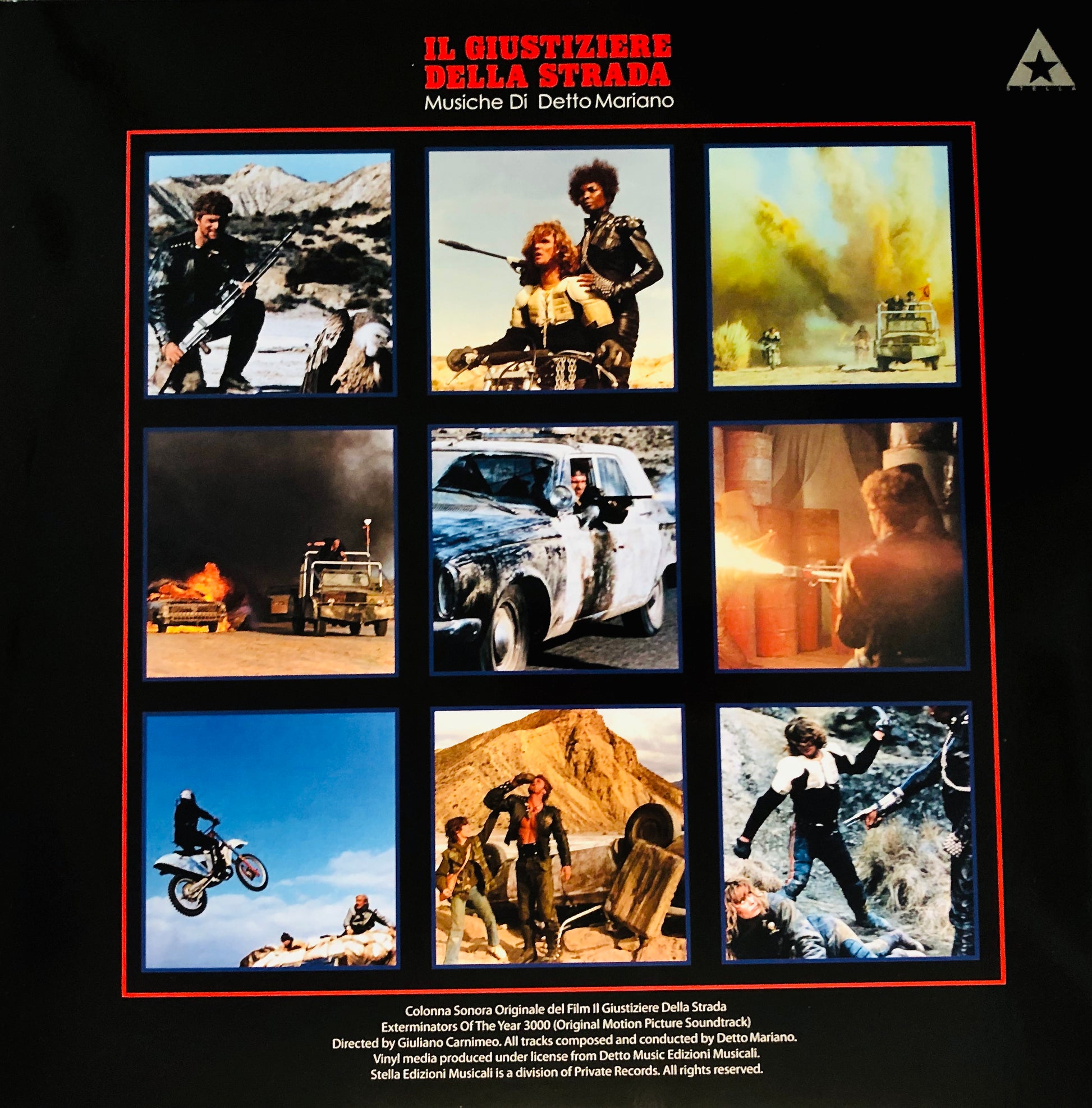 L'ululato del Criceto: Detto Mariano e “Il Giustiziere Della Strada” (1983): due storie mai raccontate in oltre trent’anni, un disco mai pubblicato fino a pochi mesi fa e, soprattutto, un film curioso, poco noto, da iscrivere tra i b-movie sci-fi da riscoprire, nonostante la quasi assoluta irreperibilità sul mercato e in rete. Una pellicola a basso costo, co-produzione italo-spagnola. Tre i titoli alternativi: “Exterminators Of The Year 3000”, “Death Warriors” ed “El Exterminador De La Carretera”. L’avventura in odor di barbarie post-atomiche, con rimandi alle vicende del Mad Max “guerriero della strada” (da qui l’assonanza con il titolo), fu diretta da Jules Harrison, pseudonimo di Giuliano Carnimeo. La pellicola merita, però, di essere ricordata per la straordinaria soundtrack di Detto Mariano. Compositore, arrangiatore, paroliere, pianista, produttore discografico e editore musicale. La colonna sonora, in ventinove frammenti di diversa durata, è un piccolo capolavoro d’artigianato e sperimentazione, avanguardia di un sottogenere horror-disco tornato prepotentemente in voga negli ultimi anni. Detto Mariano scrisse tutto alla vecchia maniera ma, al posto di convocare un’orchestra, utilizzò il più comodo Fairlight CMI (Computer Music Instrument) in linea con l’atmosfera apocalittica de “Il Giustiziere Della Strada”. Armoniche a bocca, sistri, percussioni, effetti elettronici del tutto inediti per l’epoca: con un’attenta programmazione, il Fairlight CMI offriva un’ampia gamma di possibilità, persino l’accordare e il modulare un suono simile a gocce d’acqua con la tonalità di un brano. Un lavoro godibilissimo, forse per pochi appassionati o eletti. Versione rara in doppio vinile arancione trasparente.