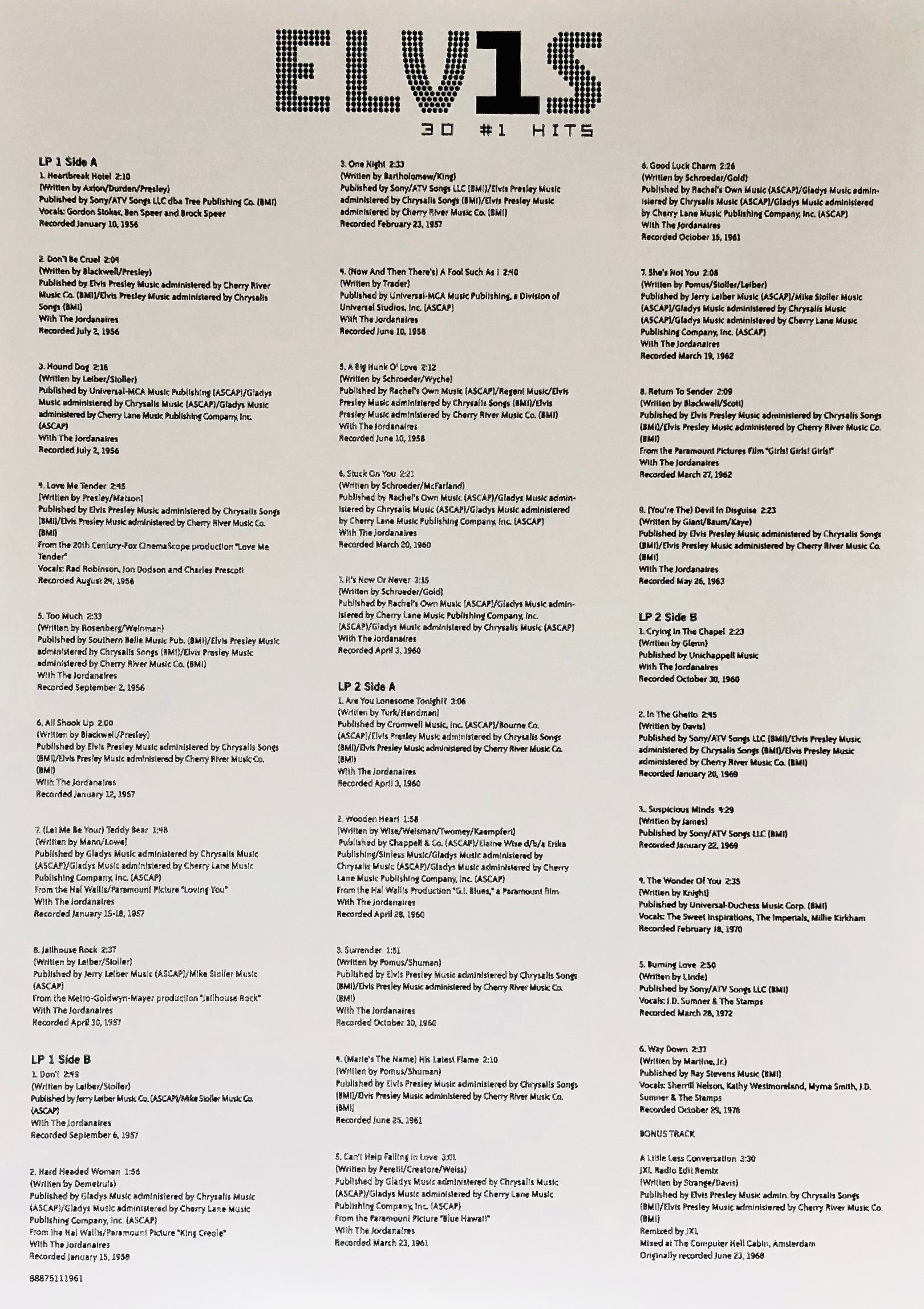 ELVIS PRESLEY - Elvis-30 #1 Hits - Doppio Vinile Nero
