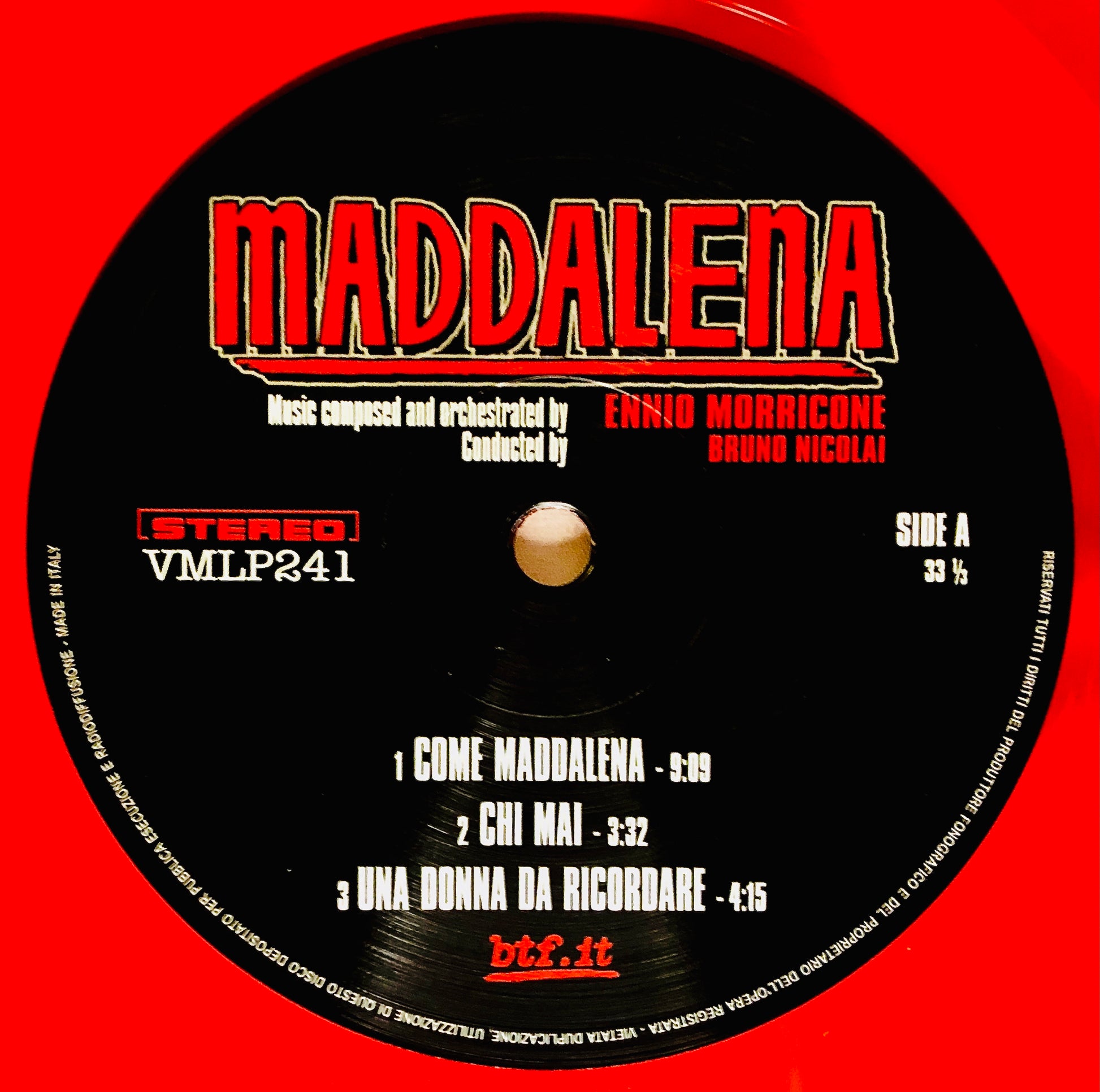 L'ululato del Criceto: “Maddalena” è un film del 1971 diretto dal regista polacco Jerzy Kawalerowicz, con Lisa Gastoni, Frank Wolff, Ivo Garrani, Paolo Gozlino e Lucia Alberti. La colonna sonora composta e orchestrata da Ennio Morricone vede la partecipazione, ancora una volta, dei classici collaboratori del Maestro: Bruno Nicolai alla direzione d’orchestra e Anna Dell’Orso e I Cantori Moderni di Alessandro Alessandroni ai cori. Questa colonna sonora è contraddistinta dalla presenza di tre lunghi brani, di quasi dieci minuti ciascuno, che mescolano elementi di musica classica, lirica, tribalismo e psichedelia, in un flusso di note e sensazioni uniche. Pubblicata originariamente nel 1971 in un raro LP molto ricercato dai collezionisti, la colonna sonora di “Maddalena” è qui ristampata in una Edizione Esclusiva e Limitata a solo 300 copie, con audio rimasterizzato dai nastri originali, un nuovo artwork e in vinile rosso trasparente.
