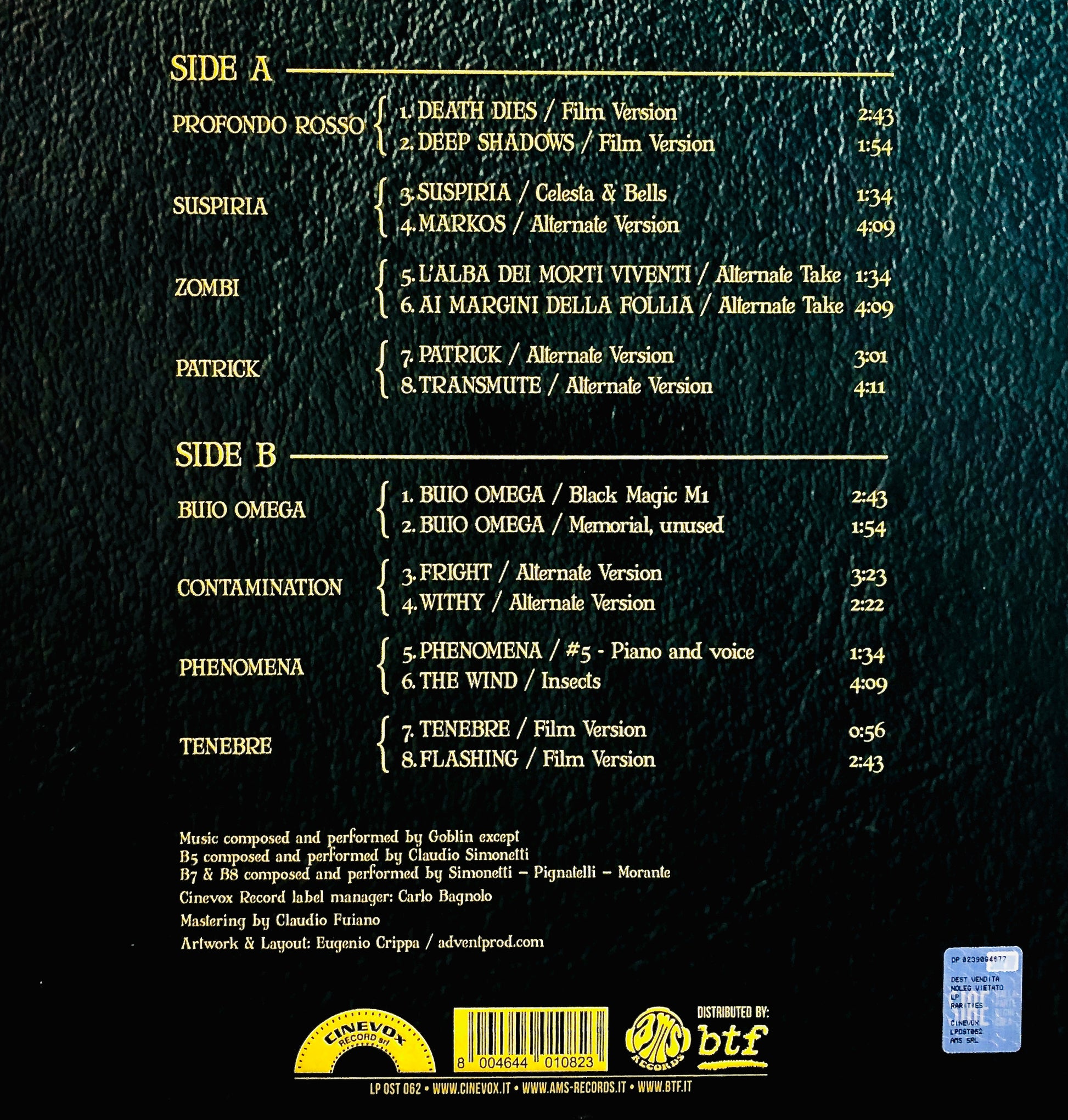 L'ululato del Criceto: direttamente dagli archivi della sterminata produzione dei Goblin, ecco un’esclusiva raccolta di versioni alternative, talvolta molto diverse da quelle pubblicate negli LP ufficiali, di brani della celebre band romana risalenti al periodo 1975 – 1982, ovvero dallo storico esordio “Profondo Rosso” fino a “Tenebre”, passando per i leggendari “Suspiria”, “Zombi” e “Phenomena” e per le gemme nascoste di “Patrick”, “Contamination” e “Buio Omega”. “Rarities” è una nuova esclusiva Record Store Day 2023 che, grazie a queste versioni alternative di storici brani del gruppo, mette alla luce i livelli eccelsi di creatività e abilità compositive di cui erano dotati i Goblin. Le loro atmosfere sinistre mettono i brividi, oggi come allora, grazie a una musica senza tempo che ha ispirato e continua a influenzare un numero impressionante di artisti, dagli anni ‘80 fino ai giorni nostri! Edizione Limitata in vinile colorato giallo.
