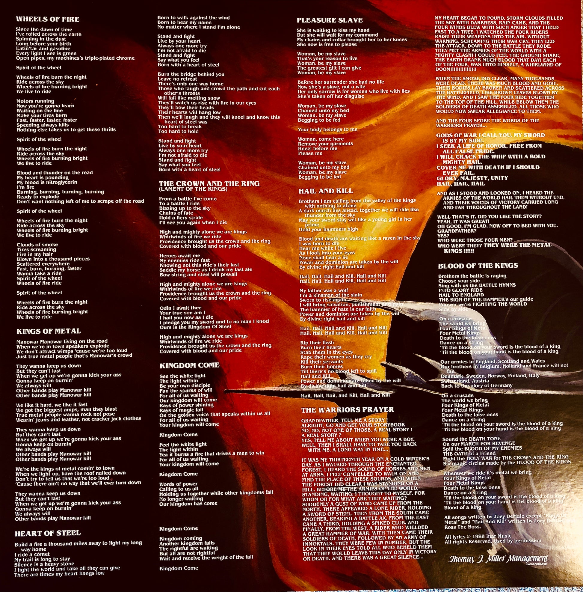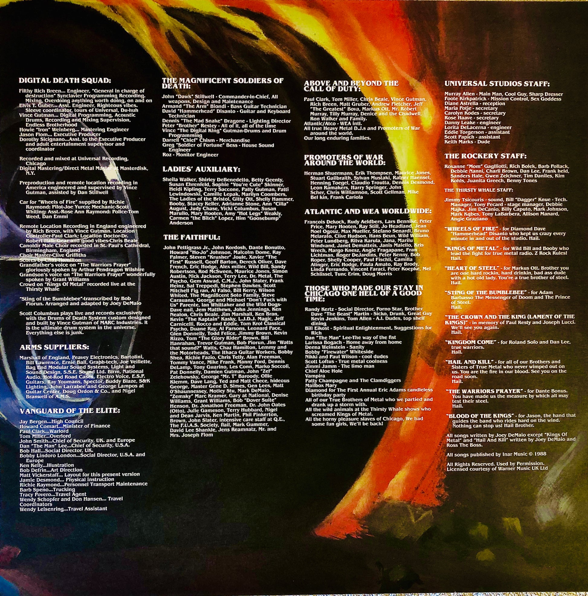 L'ululato del Criceto: disco del 1988. Il bassista Joey De Maio, prima di fondare la band, era il roadie dei Black Sabbath (responsabile degli effetti scenici). Nel girovagare conobbe Ross Funicello, in arte Ross The Boss (chitarrista). Decidono di formare un gruppo di puro heavy metal ispirato ai film Excalibur e Conan. Nel 1980 nascono i Manowar (è la contrazione di Man of War). L’Lp è un concentrato di epicità, melodia ma anche sperimentazione. L’ uso delle tastiere conferisce al disco un’aspetto sinfonico e affascinante. La ballata Heart of Steel brilla per emotività ed intensità.