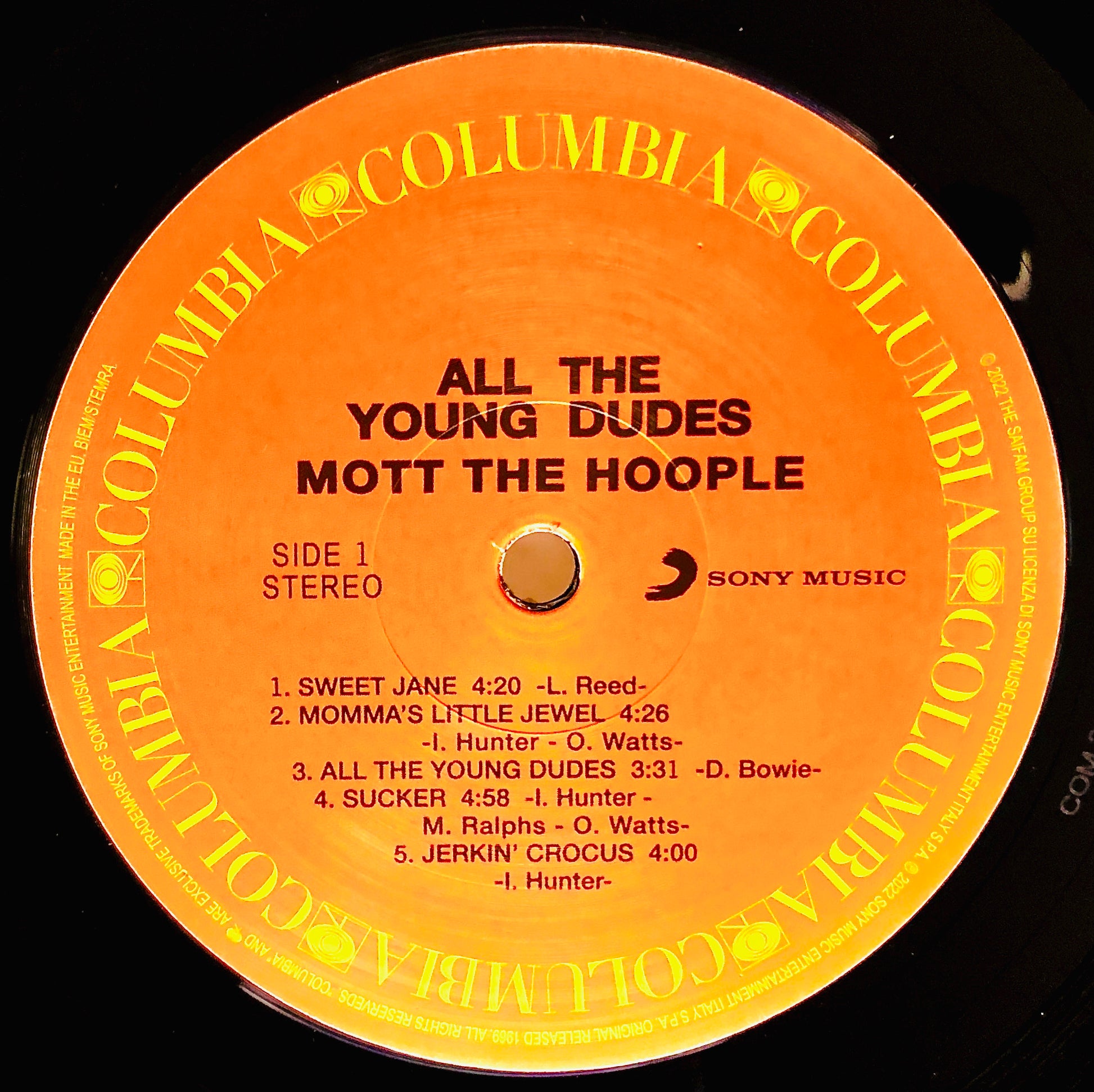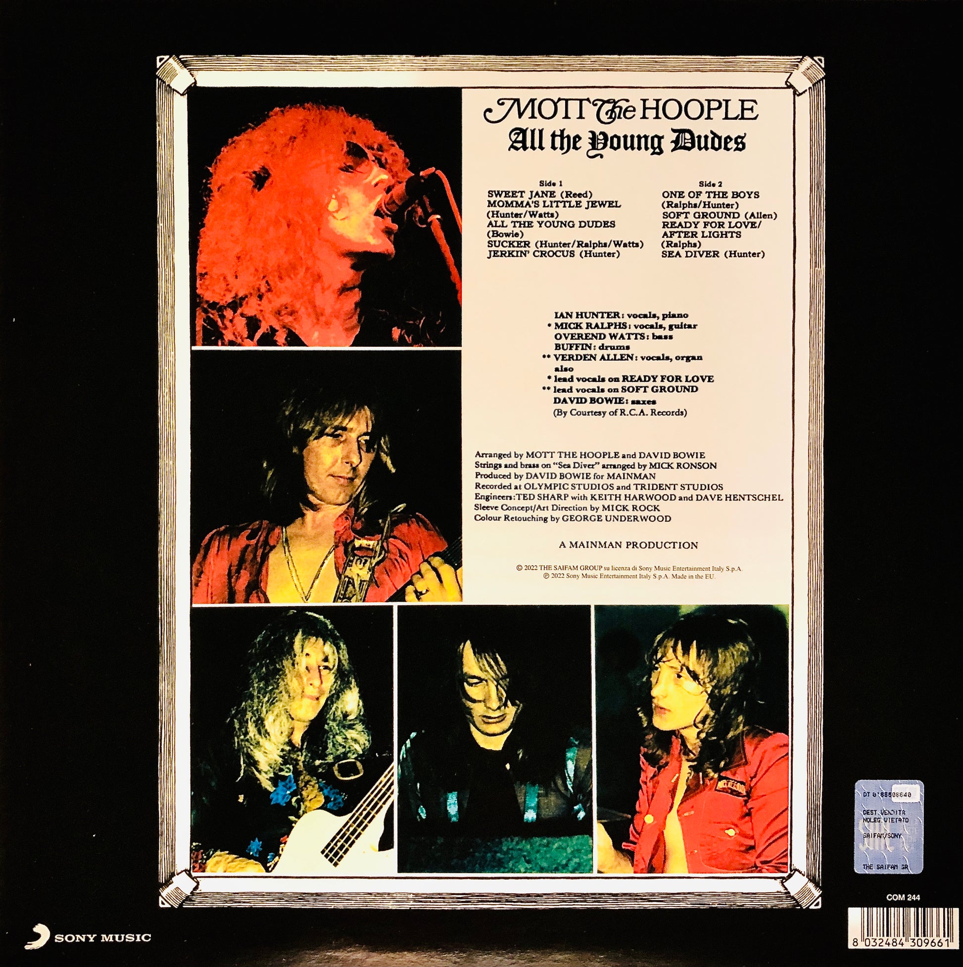 L'ululato del Criceto: quinto studio album della band, uscito nel 1972… che ha seriamente rischiato di non esistere! Infatti i Moot the Hoople, delusi dagli insuccessi di vendite dei precedenti dischi e nonostante i tutto esaurito ai concerti, avevano deciso di sciogliersi; un loro accanito fan, il famosissimo cantante David Bowie si propose loro come produttore insieme al chitarrista e arrangiatore Mick Ronson. Bowie offrì ai Mott The Hoople il pezzo Suffragette City, ma venne rifiutato in quanto considerato non adatto. Venne invece accettata All the Young Dudes, che diede il nome all’intero album. Il singolo venne indicato da Bowie come una potenziale numero 1 in classifica, e questo avvenne (fu definito dal biografo Nicholas Pegg l’inno glam rock definitivo). Singolo ed album furono un successo di vendite e finalmente il gruppo cominciò a godersi la meritata fama. Versione in vinile nero.