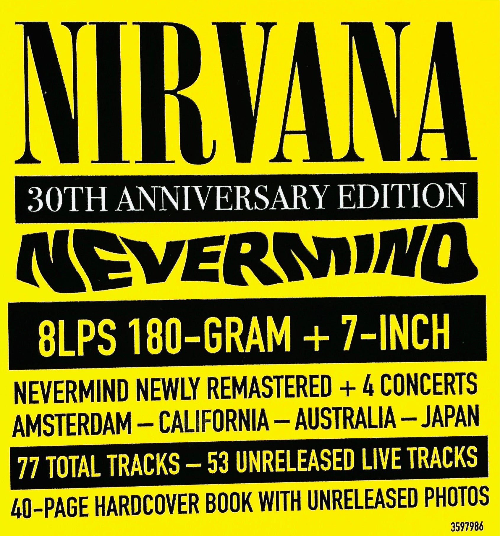 The Hamster's guide: 30th anniversary edition, limited edition, remastered, “Nevermind” (original LP remastered) + n.° 4 concerts + 7’’-inch, 40-page hardcover book with unreleased photos, gatefold cover.