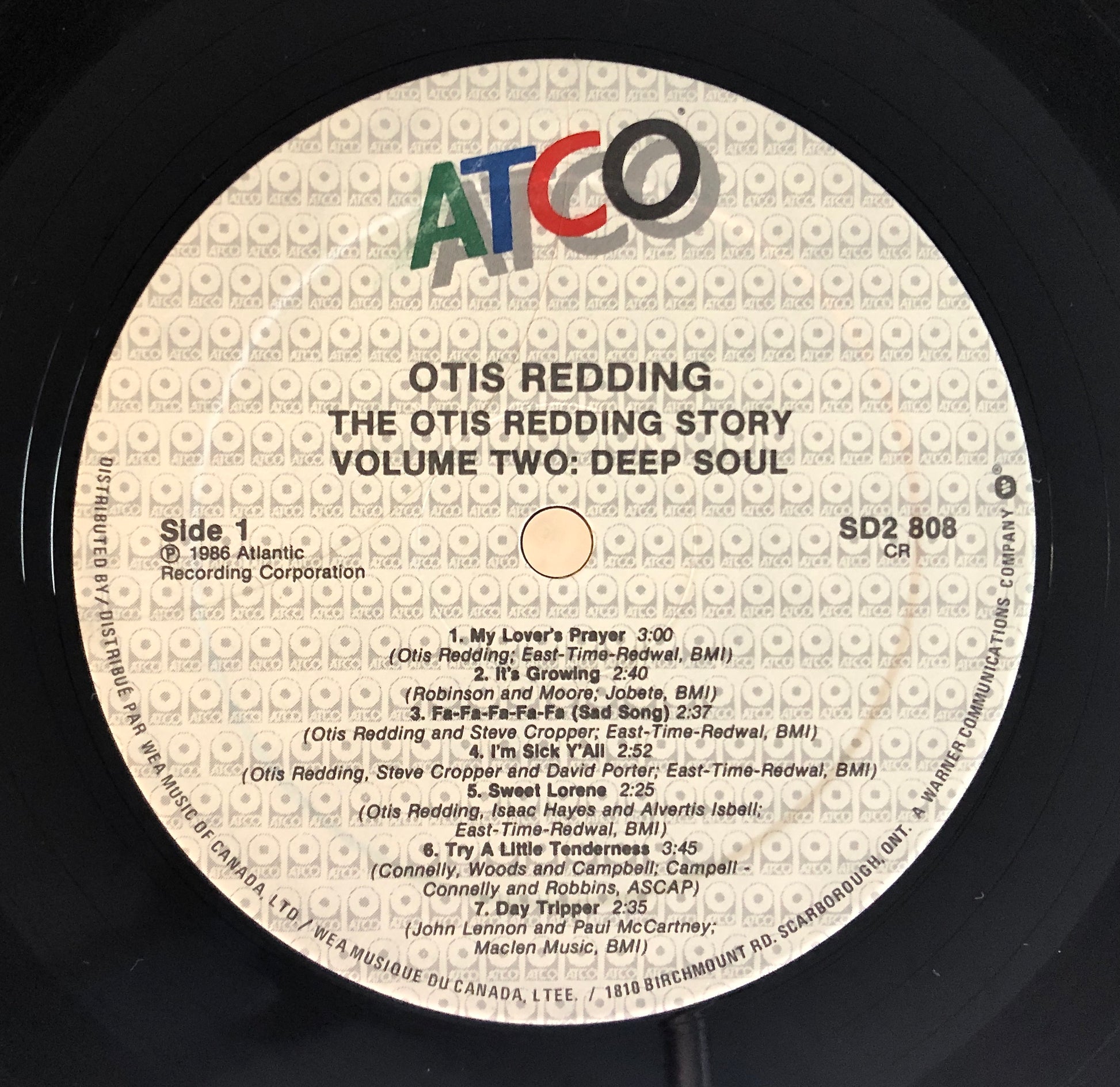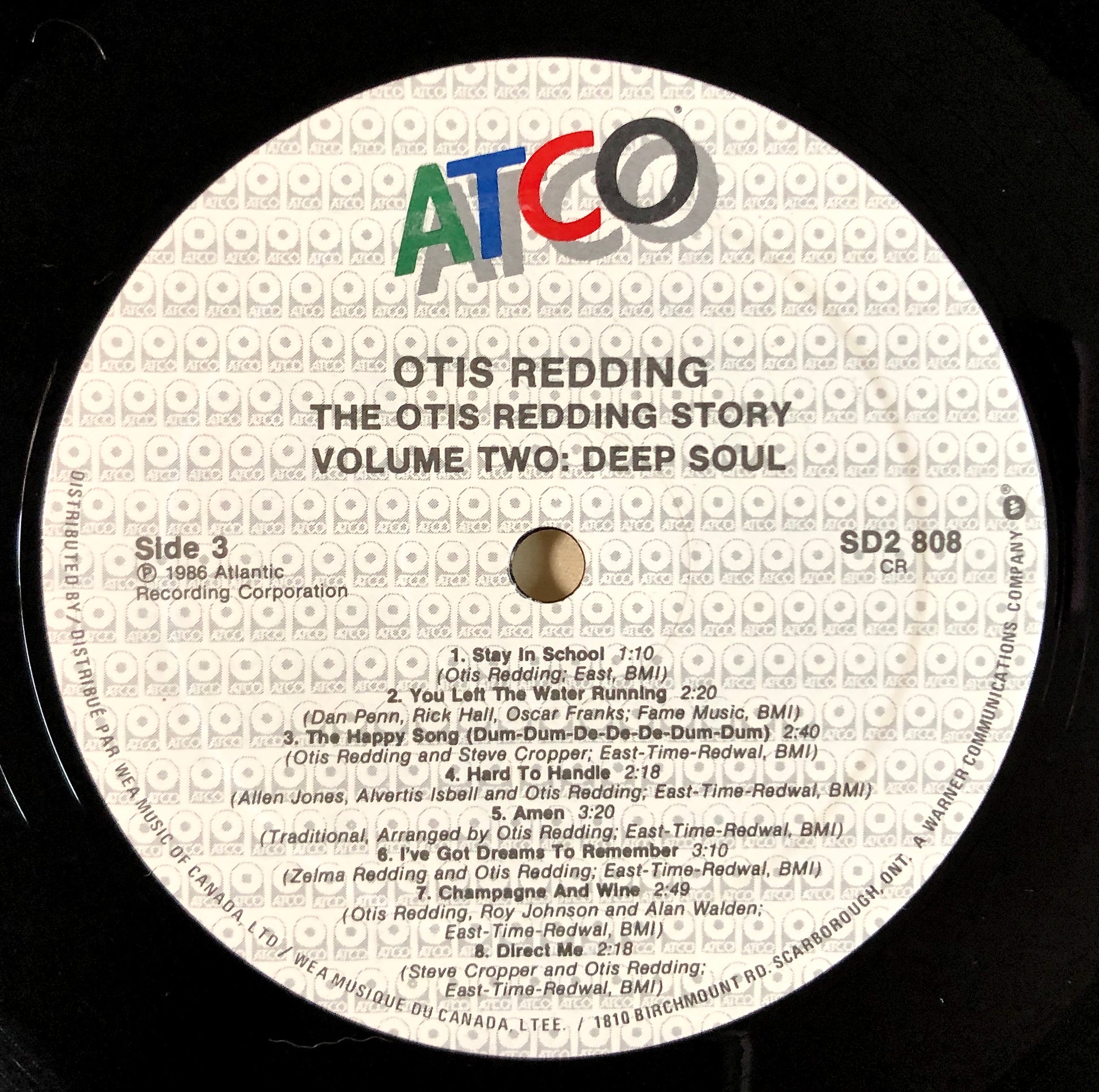 Catalogo (Catalog): SD2 808. Matrice (runout): side A, SD2-808-A; side B, SD2-808-B; side C, SD2-808-C, side D, SD2-808-D. ATCO Records (Canada), 1986.