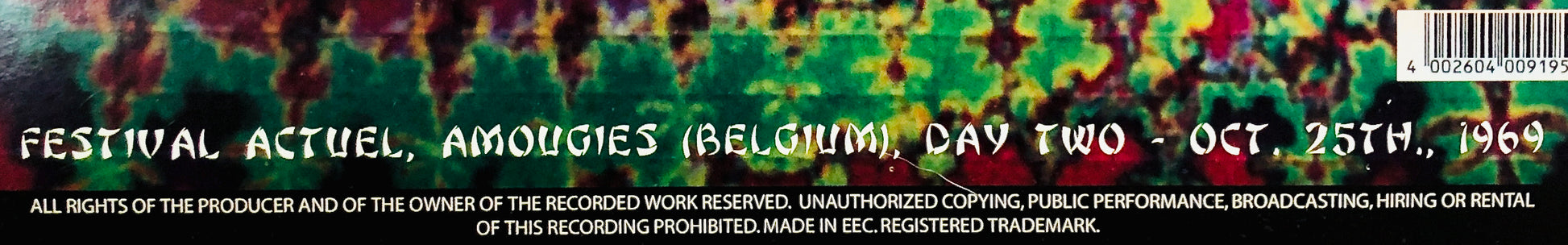 La guida del Criceto: edizione non ufficiale in vinile giallo trasparente. Copertina interna bianca. Info: concerto al Festival Actuel (Amougies, Belgio. 25 ottobre 1969). Zappa è maestro di cerimonie durante i cinque giorni del festival, esibendosi con alcuni dei tanti gruppi presenti (tra cui i Pink Floyd). La registrazione è discreta (tenendo presente che siamo nel 1969!).