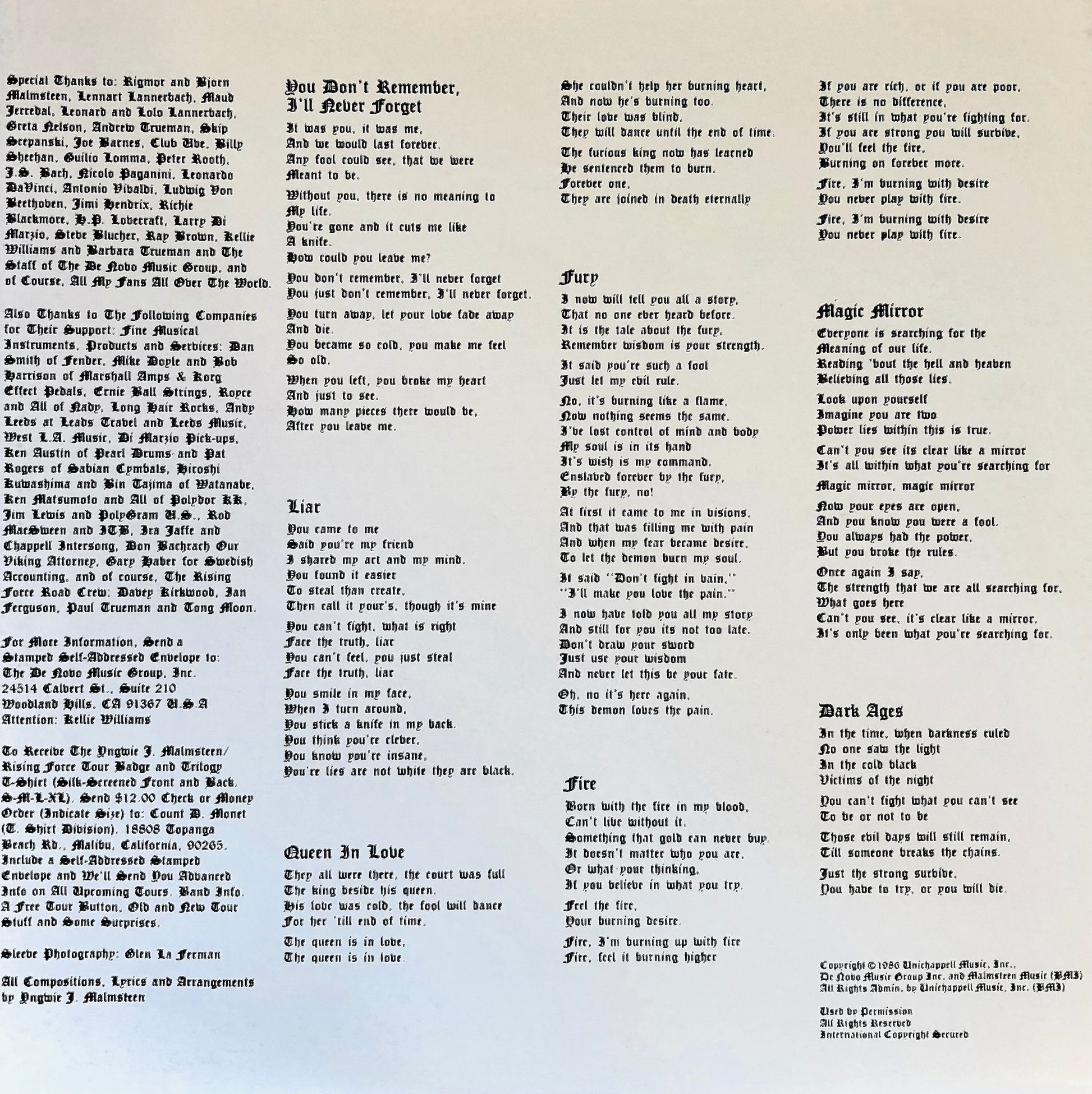 L'ululato del Criceto: terzo album (1986). LP della consacrazione. Lars Johan Yngve Lannerback in arte Yngwie J. Malmsteen. Contiene il maestoso brano strumentale “Trilogy Suite op:5”.